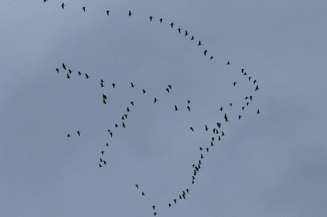 PINK FOOTED GEESE flying over Snettisham heading for the Wash.